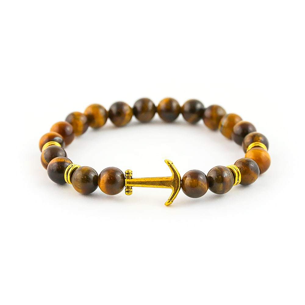 Ground your energy and embrace resilience with the Tiger Eye Anchor Bracelet, a symbol of strength, focus, and inner calm. This bracelet features 8 mm tiger eye beads rich with golden and bronze chatoyancy, accented by a gold-tone anchor charm and four matching spacers. The anchor represents steadiness and protection, an emblem for those who navigate life with courage and clarity.