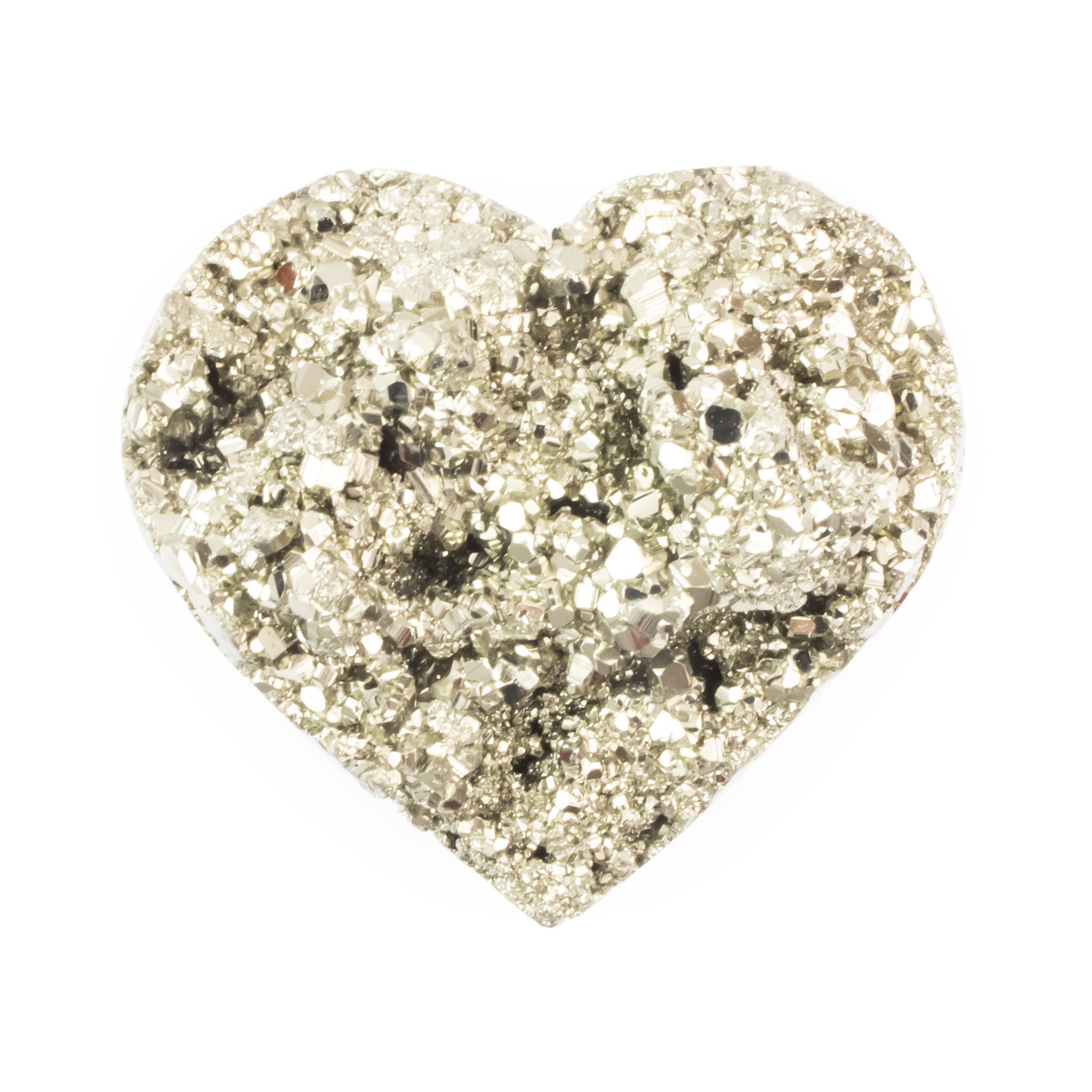 Celebrate the glittering beauty of natural mineral formation with this Pyrite Heart Cluster. The front surface showcases pyrite’s signature metallic sparkle and natural crystalline structure, while the underside is polished smooth with subtle craters, offering a tactile contrast between raw energy and refined artistry. Pyrite, often called “Fool’s Gold”, is prized for its grounding energy and symbolic encouragement of abundance, confidence, and clarity. This heart-shaped cluster combines the allure of natural geology with the elegance of a romantic display piece.